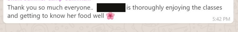 Session days and times: The sessions were conducted on Saturdays and Sundays in the evenings. Some people preferred weekends for the classes, but it did not work for others. There were some children based in other countries for whom the timings did not work. Some children also had other classes immediately after the Summer Camp session, due to which they had to leave a few minutes early. Going forward, we may offer different time slots for the Food Funda program to accommodate people with various challenge and preferences.